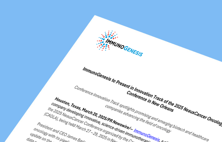 ImmunoGenesis to Present in Innovation Track of the 2025 NeauxCancer Oncology Conference in New Orleans