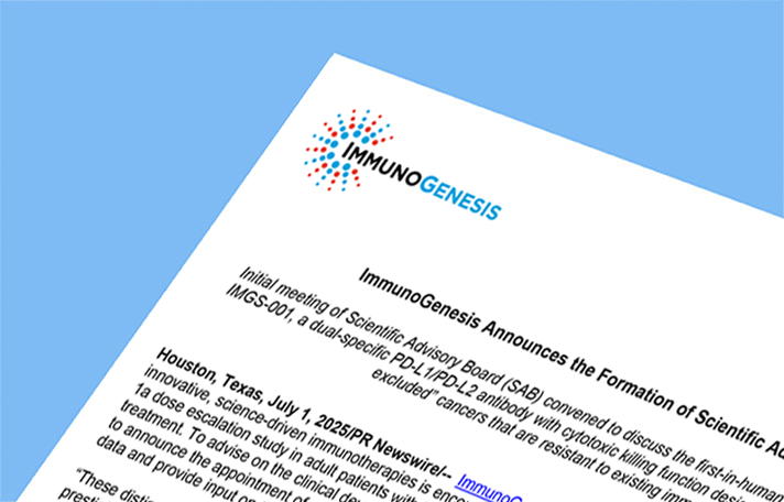 ImmunoGenesis Announces the Formation of Scientific Advisory Board
